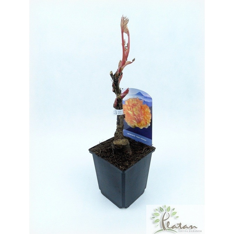 Paeonia suffruticosa, niezwykle dekoracyjny krzew o pięknych, dużych lekko strzępionych kwiatach. Posiada również zdobnicze ciemnozielone, powcinane liście, które w okresie jesiennym przybierają odcienie żółte, purpurowe bądź amarantowe. W ofercie piwonia o pięknych, pomarańczowych kwiatach.