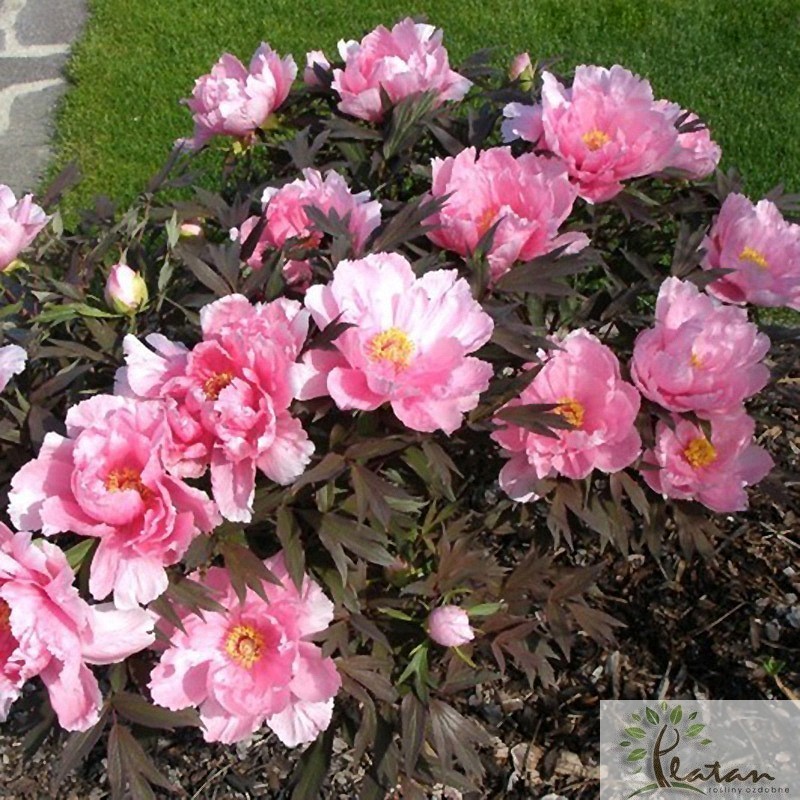 Paeonia suffruticosa, niezwykle dekoracyjny krzew o pięknych, dużych lekko strzępionych kwiatach. Posiada również zdobnicze ciemnozielone, powcinane liście, które w okresie jesiennym przybierają odcienie żółte, purpurowe bądź amarantowe. W ofercie piwonia o dużych, jasno-czerwonych kwiatach.