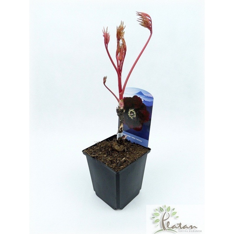 Paeonia suffruticosa, niezwykle dekoracyjny krzew o pięknych, dużych lekko strzępionych kwiatach. Posiada również zdobnicze ciemnozielone, powcinane liście, które w okresie jesiennym przybierają odcienie żółte, purpurowe bądź amarantowe. W ofercie piwonia o dużych, kasztanowych kwiatach.